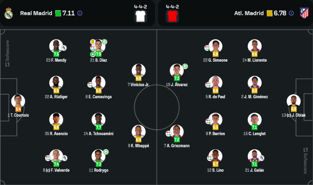 บราฮิม ดิอาซ จาก เรอัล มาดริด ได้รับคะแนนสูงสุด 7.9 ด้วยการทำประตูชัยและการเล่นที่โดดเด่นในเกมรุก
