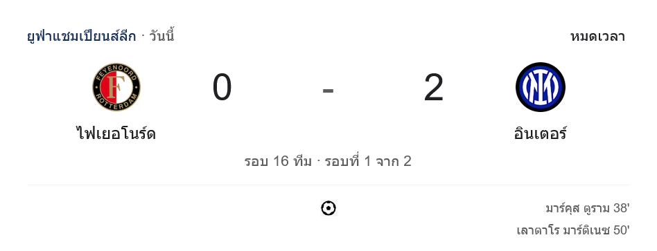 จาก : ผลบอลสด ยูฟ่าแชมเปียนส์ลีก 2024 ระหว่าง เฟเยนูร์ด ร็อตเธอร์ดัม 0-2 อินเตอร์ มิลาน วันนี้ 6/3/68 – บ้านกีฬา