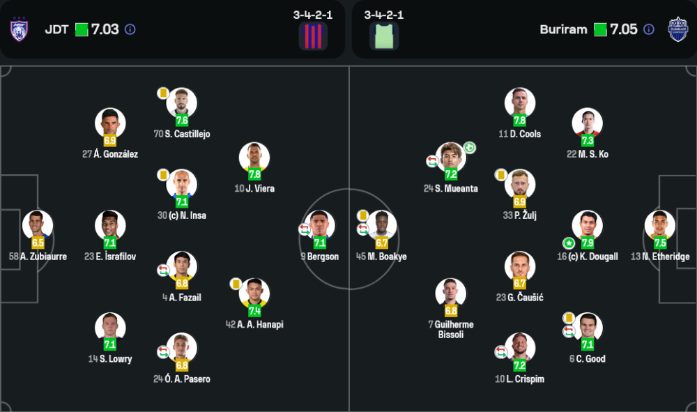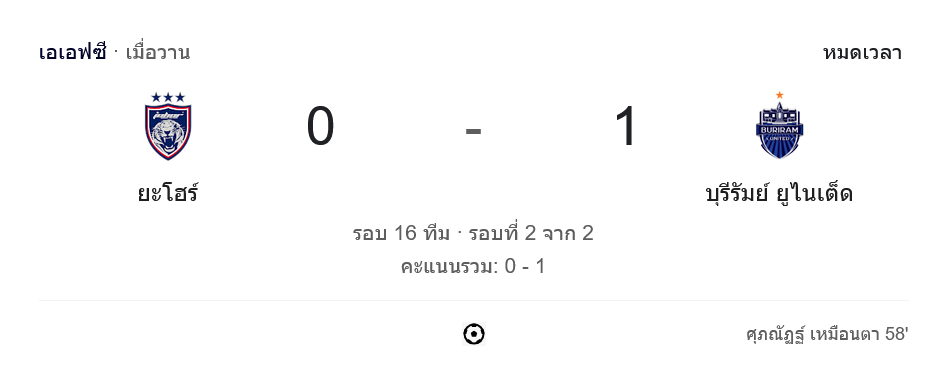 - ใบเหลือง: ยะโฮร์ 4 – 3 บุรีรัมย์