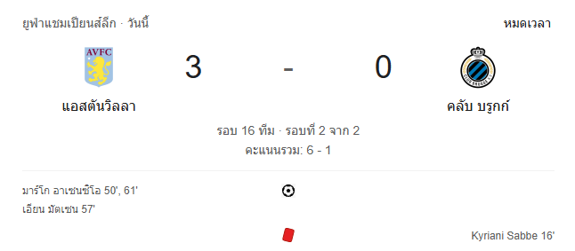 - นาทีที่ 95 กรรมการเป่าหมดเวลา แอสตัน วิลล่า เอาชนะ คลับ บรูช 3-0!