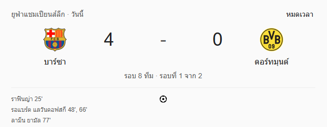 • จบเกม: บาร์เซโลน่า 4-0 โบรุสเซีย ดอร์ทมุนด์