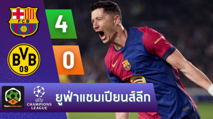 ค่ำคืนเดือดในศึก ยูฟ่าแชมเปียนส์ลีก 2025 รอบ 8 ทีมสุดท้ายนัดแรก บนแผ่นดินคัมป์นู บาร์เซโลนา ระเบิดฟอร์มโหดไล่ถล่ม โบรุสเซีย ดอร์ทมุนด์ 4-0 แบบไม่ให้ตั้งตัว สกอร์ที่ชัดเจนทำให้พวกเขาวางเท้าไว้หนึ่งข้างบนทางสู่รอบรองชนะเลิศอย่างมั่นใจ และแน่นอนว่าแฟนบอลที่ติดตาม ผลบอลสด กับ บ้านผลบอล ต้องสะใจกันถ้วนหน้า