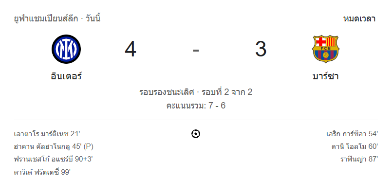 - จบครึ่งแรก: อินเตอร์ มิลาน 2-0 บาร์เซโลน่า
