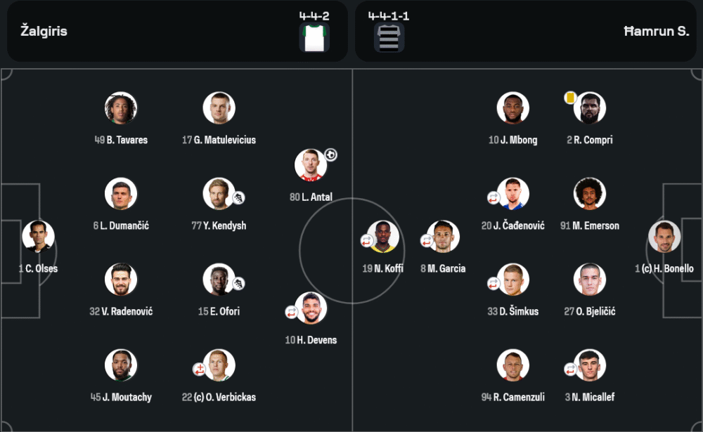 ครึ่งแรก รูปเกมยังคงสูสี ฮัมรุนพยายามแพ็คเกมรับแน่นและรอสวนกลับ ขณะที่ซัลกิริสครองบอลมากกว่าแต่ยังเจาะไม่เข้า โอกาสใกล้เคียงมีจากลูกครอสทางริมเส้นแต่ยังไม่คมพอ ผู้รักษาประตูของฮัมรุนเซฟได้หลายครั้งจบครึ่งแรก 0-0