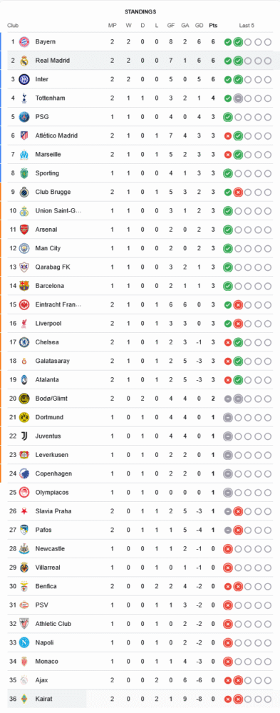 หลังจบเกมนี้ เรอัล มาดริด เก็บ 6 คะแนนเต็มจาก 2 นัด อยู่อันดับ 2 ของกลุ่มตามหลังบาเยิร์น ส่วน ไครัต แพ้รวด 2 นัด เสียถึง 8 ประตู ยังไม่มีแต้ม รั้งบ๊วยของกลุ่ม สถานการณ์น่าเป็นห่วง ต้องเร่งฟอร์มอย่างหนักหากหวังมีลุ้น
