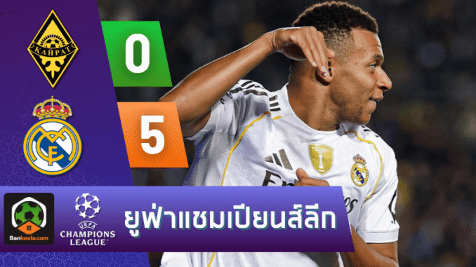 “บ้านกีฬา” รายงาน ผลบอลสด สุดเดือดจากศึก ยูฟ่า แชมเปียนส์ลีก รอบแบ่งกลุ่มนัดที่ 2 ระหว่าง เอฟซี ไครัต อัลมาตี้ ตัวแทนจากคาซัคสถาน เปิดบ้านรับมือ เรอัล มาดริด ยอดทีมจากสเปน เกมนี้ “ราชันชุดขาว” โชว์พลังเกมรุกสุดโหด ถล่มเจ้าถิ่นขาดลอย 5-0 นำโดยฟอร์มพระกาฬของ คีเลียน เอ็มบัปเป้ ที่ซัดแฮตทริกเต็มๆ พร้อมพาทีมเก็บ 6 แต้มเต็มจาก 2 นัด ยึดอันดับ 2 ของกลุ่มแบบมั่นใจ