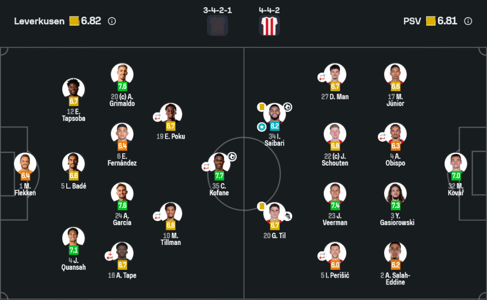 อิสมาเอล ไซบารี (พีเอสวี) – วิ่งสอดหลังแนวรับต่อเนื่อง, ยืนตำแหน่งฉลาด, เปลี่ยนสปีดทำลายไลน์สูงของเลเวอร์คูเซิน และซัดประตูตีเสมอสำคัญให้ทีมไม่มือเปล่า สมควรสุดสำหรับเกียรติยศเกมนี้