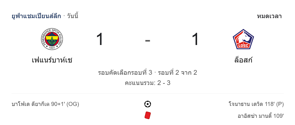 ผลบอลยูฟ่าแชมเปียนส์ลีก 2024 ระหว่าง ทีมเฟเนร์บาห์เช่ vs ทีมลีลล์ วันนี้ 14/8/67 ดูบอลย้อนหลัง คลิปไฮไลท์ ดูบอลยูฟ่าแชมเปียนส์ลีก 2024