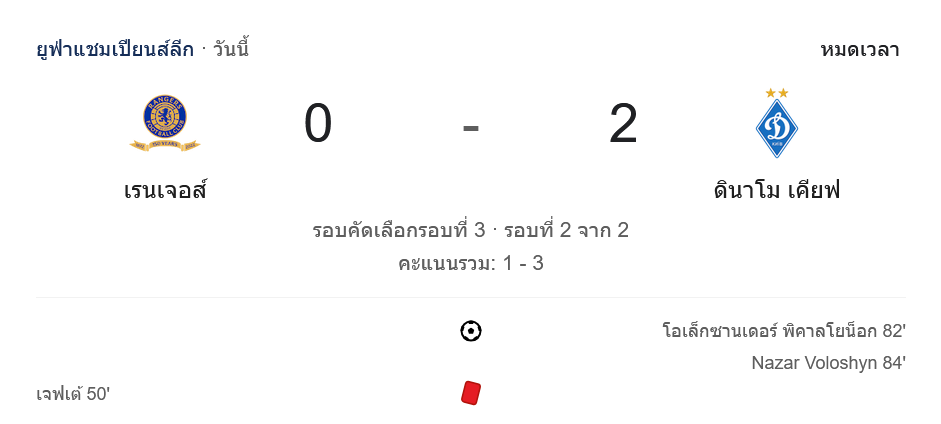 กลาสโกว์ เรนเจอร์ส 0-2 ดินาโม เคียฟ