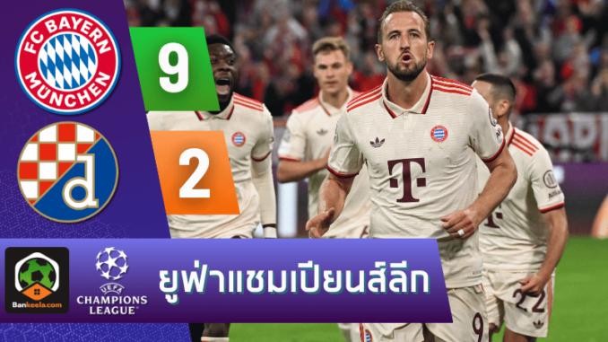 ศึก ยูฟ่าแชมเปียนส์ลีก 2024 นัดเปิดสนามของกลุ่ม บาเยิร์น มิวนิค เปิดบ้านต้อนรับการมาเยือนของดินาโม ซาเกร็บ และโชว์ฟอร์มอย่างดุดันด้วยการถล่มไปถึง 9-2 ประตู ชัยชนะครั้งนี้ถือเป็นการแสดงพลังของ “เสือใต้” ที่ทำให้คู่แข่งจากโครเอเชียไม่มีโอกาสลุ้น