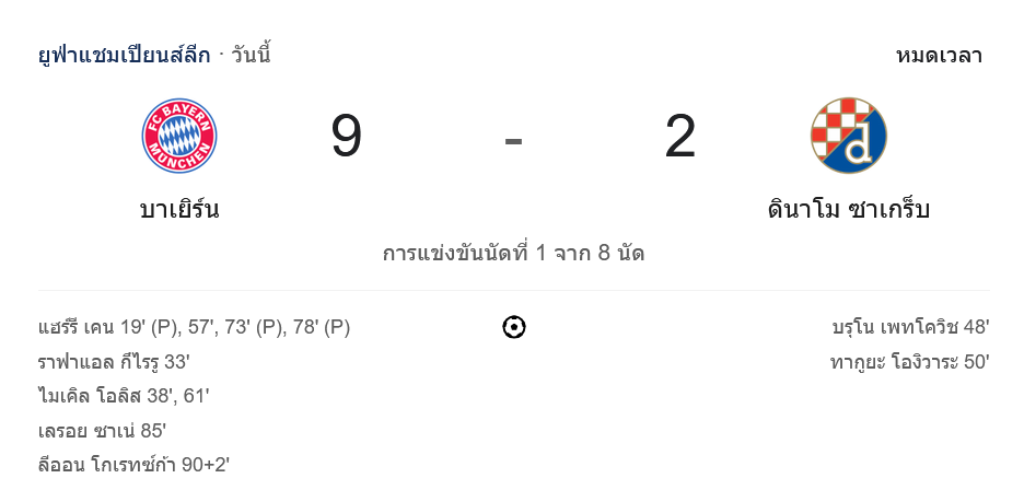- นาทีที่ 34: มาติส โอลิเซ ยิงให้บาเยิร์น 3-0