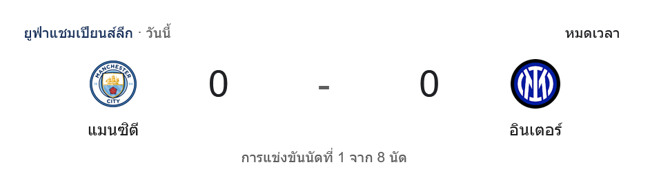 ศึก ยูฟ่าแชมเปียนส์ลีก 2024 รอบแบ่งกลุ่ม นัดแรกระหว่าง แมนเชสเตอร์ ซิตี้ และ อินเตอร์ มิลาน จบลงด้วยผลเสมอ 0-0 ในเกมที่เต็มไปด้วยการบุกและป้องกันอันยอดเยี่ยมของทั้งสองทีม ทั้งสองฝ่ายพยายามบุกอย่างต่อเนื่องแต่ไม่สามารถทำประตูได้ สุดท้ายแบ่งแต้มกันไปในนัดเปิดสนาม