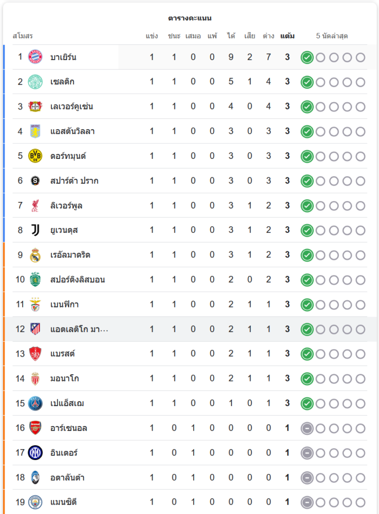 แอตเลติโก้ มาดริด ขึ้นมาอยู่อันดับที่ 12 ของตารางคะแนนหลังจากเก็บ 3 แต้มแรกได้สำเร็จ ขณะที่ ไลป์ซิก อยู่ในอันดับที่ 22 หลังจากแพ้ในเกมนี้และยังไม่มีคะแนน