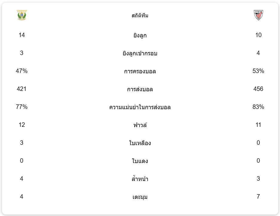 แอธเลติก บิลเบา จะเตรียมพร้อมสำหรับการแข่งขันนัดถัดไปในลาลีกา ซึ่งพวกเขาหวังที่จะรักษาฟอร์มที่ดีเอาไว้ ส่วนเลกาเนสต้องเร่งแก้ไขปัญหาในแนวรุกเพื่อกลับมาสู่เส้นทางชัยชนะอีกครั้ง