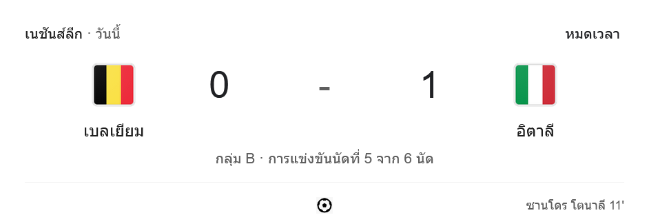 ในการแข่งขัน ยูฟ่าเนชันส์ลีก 2024 รอบแบ่งกลุ่ม นัดที่ 5 เบลเยียมเปิดบ้านต้อนรับการมาเยือนของอิตาลี แมตช์นี้เต็มไปด้วยความเข้มข้นและดุดันจากทั้งสองทีม แต่ท้ายที่สุดอิตาลีเฉือนชนะไป 1-0 ด้วยประตูเดียวจาก ซานโดร โตนาลี ในนาทีที่ 11 ทำให้ทีมเยือนเก็บสามแต้มสำคัญ และขยับขึ้นเป็นจ่าฝูงของกลุ่ม A