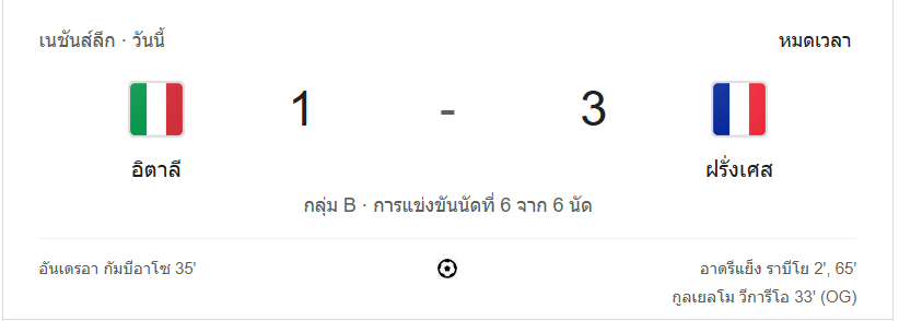 ผลบอลสดยูฟ่าเนชันส์ลีก 2024 ระหว่าง ทีม อิตาลี vs ฝรั่งเศส 18/11/67 ดูบอลย้อนหลัง คลิปไฮไลท์ ดูบอลยูฟ่าเนชันส์ลีก 2024