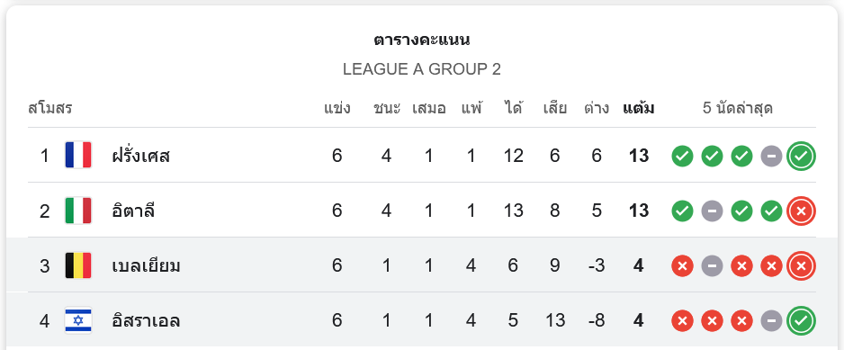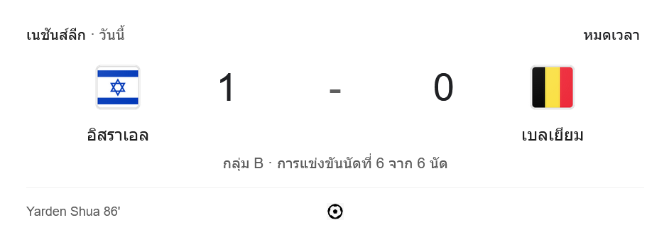 จาก : ผลบอลสด ยูฟ่าเนชันส์ลีก 2024 ระหว่าง อิสราเอล 1-0 เบลเยียม วันนี้ 18/11/67 – บ้านกีฬา