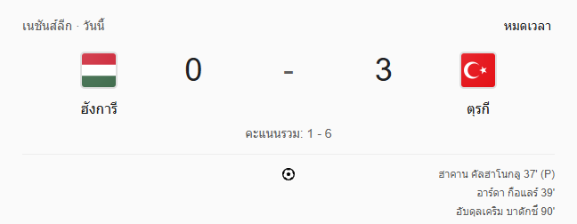 - หมดเวลาการแข่งขัน: ฮังการี 0-3 ตุรกี ตุรกีโชว์ฟอร์มสุดเฉียบ จบสกอร์คม บดบังทุกไฮไลต์ของฮังการี พร้อมจองตั๋วสู่รอบลึกด้วยฟอร์มอันดุดันจากทั้งแนวรุกและแนวรับ