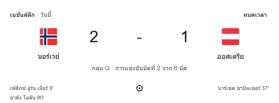 - นาทีที่ 80: นอร์เวย์ 2-1 ออสเตรีย (Erling Haaland)