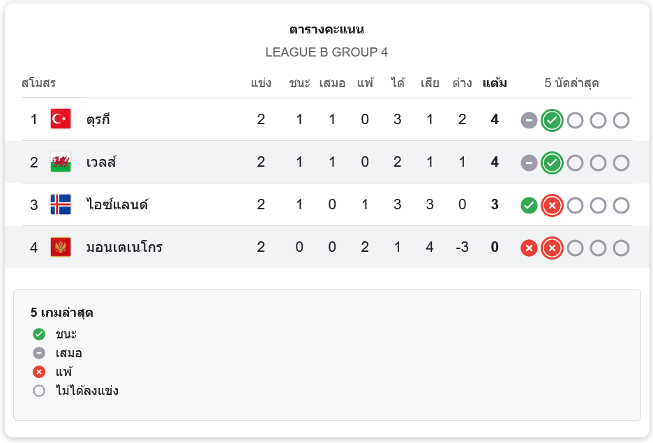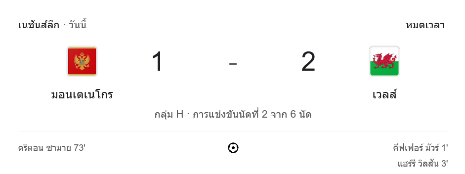 - นาทีที่ 1: เวลส์ 1-0 มอนเตเนโกร (Kieffer Moore)