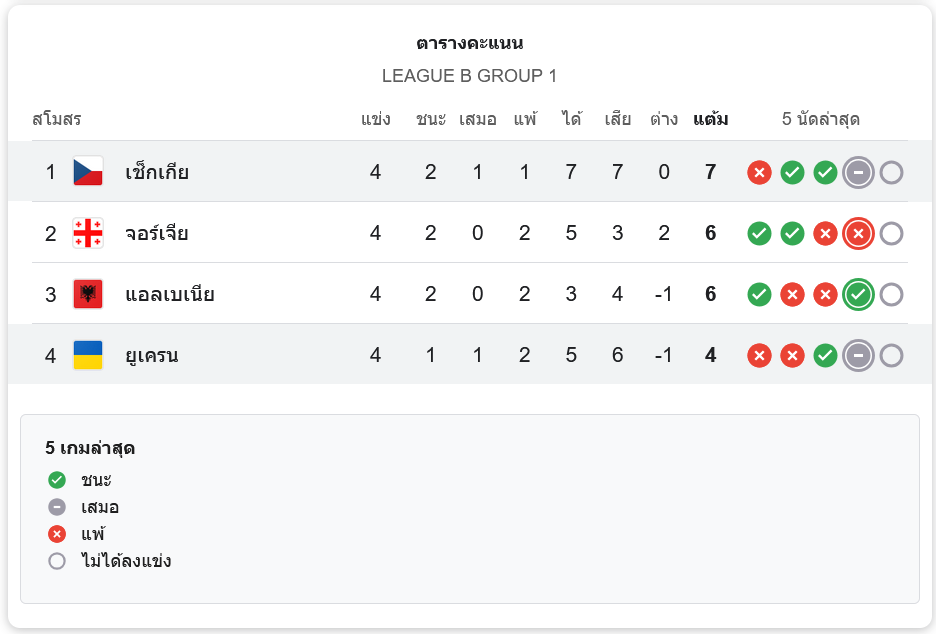 ตารางคะแนนยูฟ่าเนชันส์ลีก 2024 ระหว่าง ยูเครน 1-1 สาธารณรัฐเช็ก