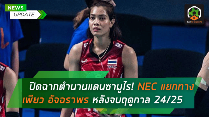สโมสร NEC เรด ร็อกเก็ตส์ ทีมยักษ์ใหญ่จากเมืองคาวาซากิ ประเทศญี่ปุ่น ประกาศอย่างเป็นทางการผ่านเว็บไซต์และโซเชียลมีเดียของสโมสรว่า ได้แยกทางกับผู้เล่น 5 คนหลังจบฤดูกาล วอลเลย์บอลหญิง V.League ญี่ปุ่น 2024/25 ซึ่งหนึ่งในนั้นคือดาวตบขวัญใจแฟนวอลเลย์บอลไทย “เพียว” อัจฉราพร คงยศ หัวเสาทีมชาติไทย วัย 28 ปี ที่ฝากผลงานสุดประทับใจตลอด 2 ฤดูกาลในแดนซามูไร