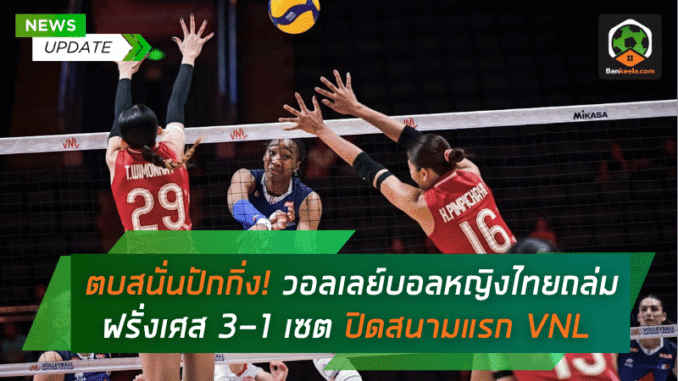ทีม วอลเลย์บอลหญิงทีมชาติไทย โชว์ฟอร์มแกร่งปิดฉากสนามแรกของศึก วอลเลย์บอลหญิงเนชันส์ลีก 2025 (FIVB Women’s Nations League 2025) ได้อย่างสมศักดิ์ศรี ด้วยการตบเอาชนะทีมชาติฝรั่งเศสไปอย่างขาดลอย 3-1 เซต เมื่อวันที่ 8 มิถุนายน 2568 ณ กรุงปักกิ่ง ประเทศจีน การันตีความพร้อมก่อนเข้าสู่สนามที่สองที่เขตบริหารพิเศษฮ่องกงกลางเดือนนี้