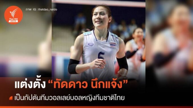 สมาคมกีฬาวอลเลย์บอลแห่งประเทศไทย แต่งตั้ง “ทัดดาว นึกแจ้ง” บอลเร็ววัย 30 ปี ซึ่งถือเป็นตัวหลักของทีมวอลเลย์บอลหญิงทีมชาติไทย ตั้งแต่ยุคโค๊ชอ๊อด เกียรติพงษ์ รัชตเกรียงไกร จนมาถึงยุคปัจจุบัน ให้เป็นกัปตันทีมชาติคนใหม่อย่างเป็นทางการ ด้วยประสบการณ์อันยาวนาน ซึ่งทั้งคุณวุฒิและวัยวุฒิ ถือว่าทัดดาวเหมาะสมกับตำแหน่งนี้