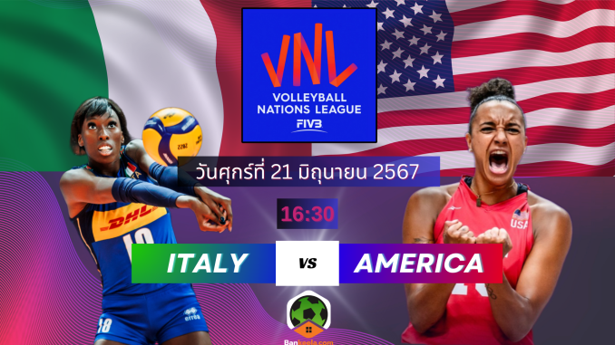 โดยการแข่งขัน วอลเลย์บอล VNL 2024  ในสัปดาห์ที่ 3 ทัพนักตบลูกยางสาว วอลเลย์บอลหญิงอิตาลี วันนี้จะพบกับทีม วอลเลย์บอลหญิงสหรัฐอเมริกา