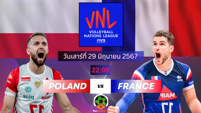 ถ่ายทอดสดวอลเลย์บอลชาย VNL 2024 โปแลนด์ พบ ฝรั่งเศส เนชั่นส์ลีก วันนี้ 29/6/67