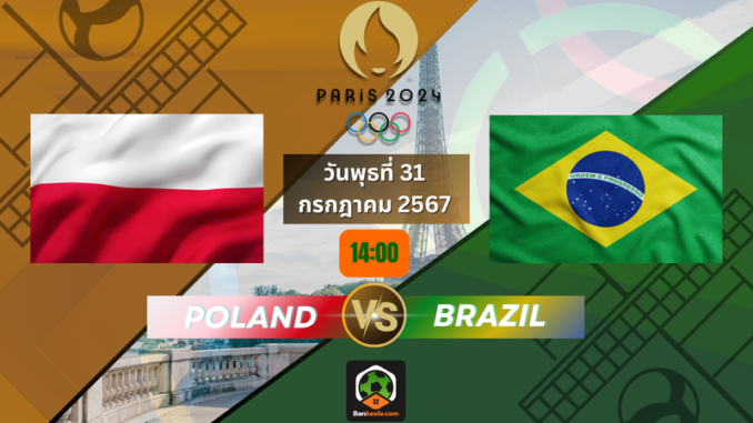 ถ่ายทอดสด วอลเลย์บอลวันนี้ โปแลนด์ VS บราซิล การแข่งขัน Olympic Games 2024 หรือ ปารีสเกมส์ 2024 จะจัดขึ้นที่สนาม ปารีส เอ็กซ์โป ปอร์ต เดอ แวร์ซาย ในกรุงปารีส ประเทศฝรั่งเศส ระหว่างวันที่ 27 กรกฎาคม – 11 สิงหาคม 2567