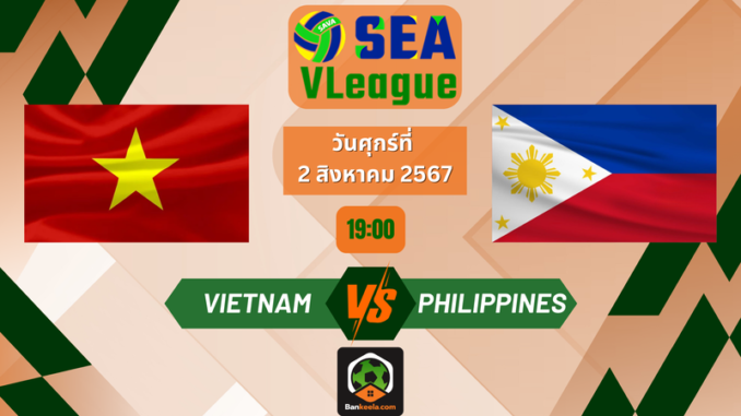 ถ่ายทอดสด วอลเลย์บอลวันนี้ เวียดนาม VS ฟิลิปปินส์ ในการแข่งขัน ซี วี ลีก 2024 (SEA V League 2024) ระหว่างวันที่ 2-25 สิงหาคม 2567 ซึ่งจะจัดขึ้นที่ประเทศเวียดนามและประเทศไทย
