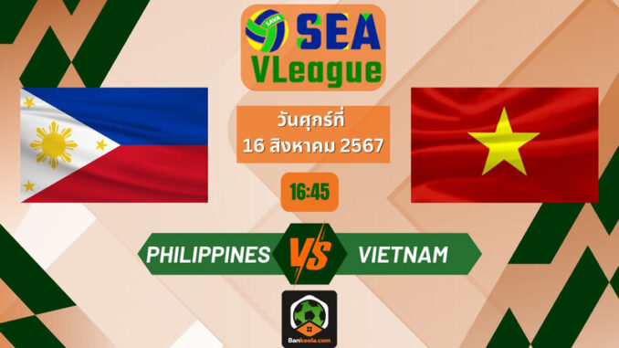 ดูวอลเลย์บอลชายสด ซี วี ลีก 2024 (SEA V League 2024) ฟิลิปปินส์ พบ เวียดนาม วันนี้ 16/8/67