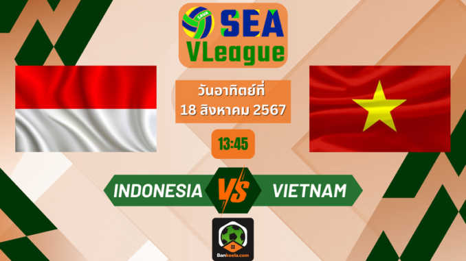 ถ่ายทอดสด วอลเลย์บอลวันนี้  อินโดนีเซีย VS เวียดนาม ในการแข่งขัน ซี วี ลีก 2024 (SEA V League 2024) ระหว่างวันที่ 2-25 สิงหาคม 2567 ซึ่งจะจัดขึ้นที่ประเทศฟิลิปปินส์