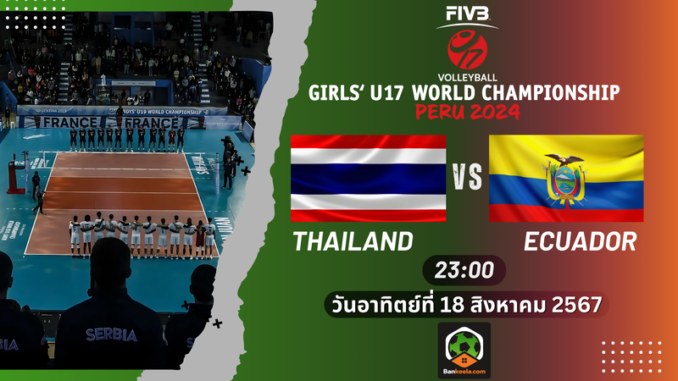 ถ่ายทอดสด วอลเลย์บอลวันนี้ ไทย VS เอกวาดอร์ ในการแข่งขัน (FIVB Volleyball Girls’ U17 World Championship) ระหว่างวันที่ 17-23 สิงหาคม 2567 ซึ่งจะจัดขึ้นที่ประเทศเปรู
