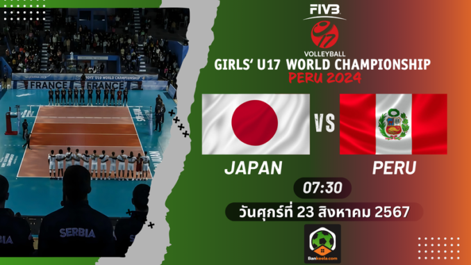 ถ่ายทอดสด วอลเลย์บอลวันนี้ ญี่ปุ่น VS เปรู ในการแข่งขัน (FIVB Volleyball Girls’ U17 World Championship) ระหว่างวันที่ 17-23 สิงหาคม 2567 ซึ่งจะจัดขึ้นที่ประเทศเปรู