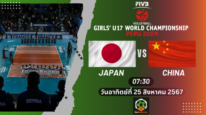 ถ่ายทอดสด วอลเลย์บอลวันนี้ ญี่ปุ่น VS จีน ในการแข่งขัน (FIVB Volleyball Girls’ U17 World Championship) ระหว่างวันที่ 17-23 สิงหาคม 2567 ซึ่งจะจัดขึ้นที่ประเทศเปรู