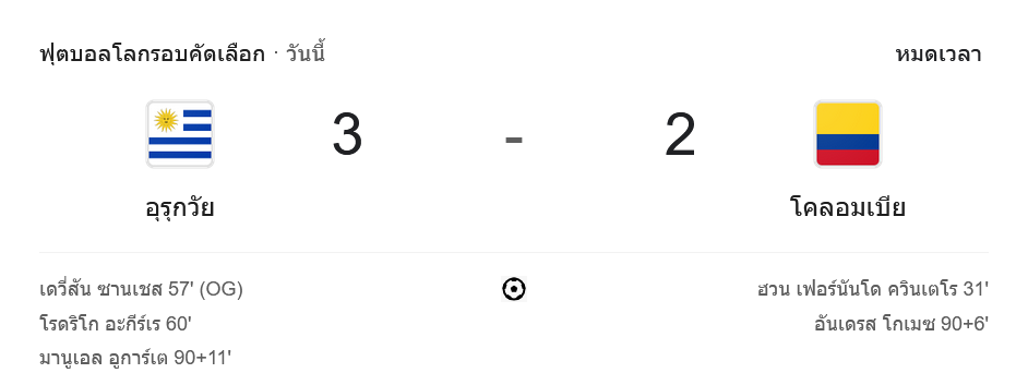 - ⚽ 57’ เดวินสัน ซานเชซ ทำเข้าประตูตัวเอง อุรุกวัยตีเสมอ 1-1