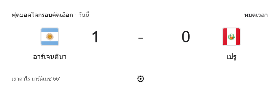 จาก : ผลบอลสดฟุตบอลโลก โซนเอเชีย 2024 ระหว่าง อาร์เจนตินา 1-0 เปรู 20/11/67 – บ้านกีฬา