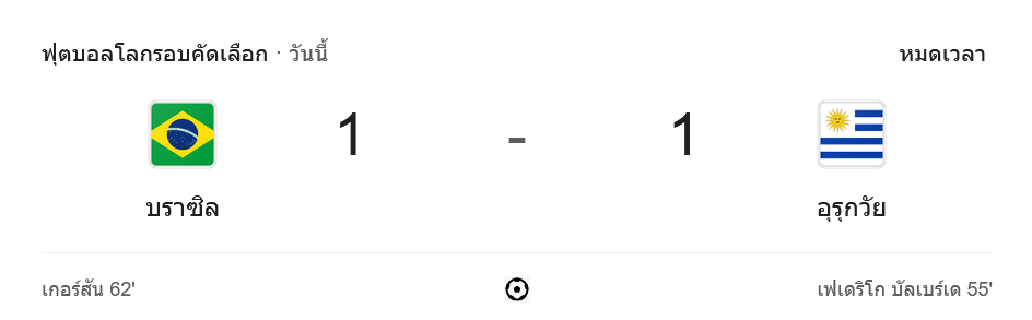 - ⚽ 62′ เกอร์ซอน ยิงประตูตีเสมอให้บราซิล