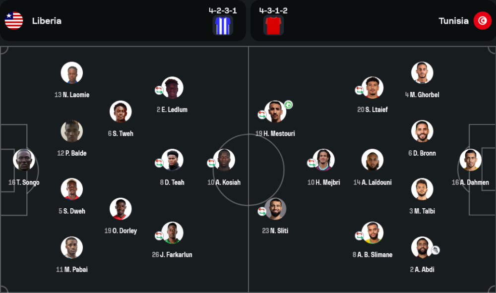 🔄 71′ | เปลี่ยนตัว | ไลบีเรียส่ง ชีค เซเซย์ และ นิโคลัส แอนดรูส์ ลงสนาม