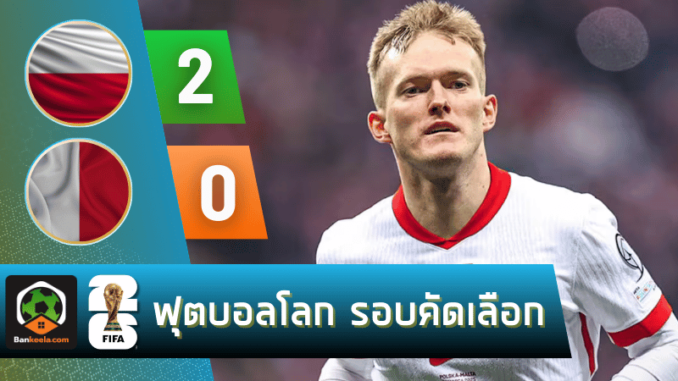 จาก : ผลบอลสด ฟุตบอลโลก 2026 รอบคัดเลือก ระหว่าง โปแลนด์ 2-0 มอลตา วันนี้ 25/3/68 – บ้านกีฬา
