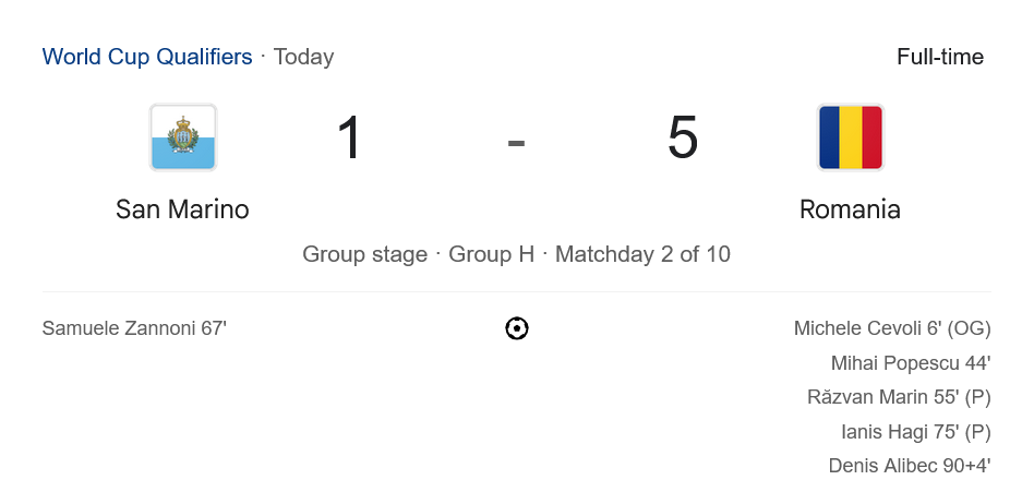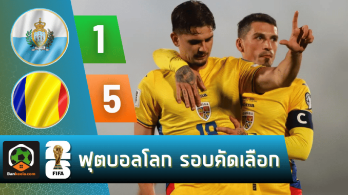จาก : ผลบอลสด ฟุตบอลโลก 2026 รอบคัดเลือก ระหว่าง ซานมารีโน 1-5 โรมาเนีย วันนี้ 25/3/68 – บ้านกีฬา