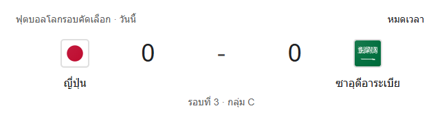 ผลบอลสด ฟุตบอลโลก 2026 รอบคัดเลือก ระหว่าง ญี่ปุ่น 0-0 ซาอุดีอาระเบีย วันนี้ 25/3/68