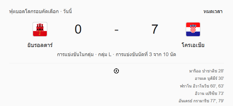 - หมดเวลาการแข่งขัน! ยิบรอลตาร์ 0-7 โครเอเชีย