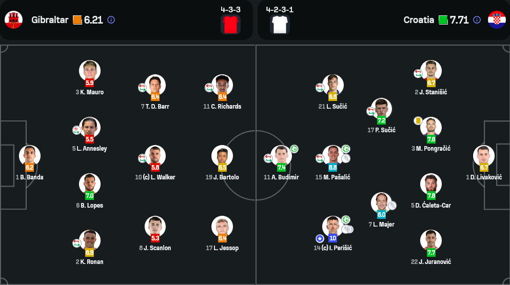 โครเอเชียจัดทัพมาในระบบ 4-2-3-1 ที่เน้นการเคลื่อนบอลเร็วและใช้การประสานงานระหว่างตัวรุกที่หลากหลาย โดยเฉพาะ เปริซิช, ปาซาลิช และมาเจอร์ ที่ช่วยกันครองเกมกลางสนามและดันขึ้นเติมเกมรุกได้อย่างมีประสิทธิภาพ ขณะที่แบ็กสองข้างเติมสูงช่วยกดแนวรับยิบรอลต้าร์ให้แทบไม่ได้ตั้งตัว เกมนี้แสดงให้เห็นถึงคุณภาพเกมบุกที่หลากหลายและจังหวะจบสกอร์ที่เฉียบคม ส่วนฝั่งเจ้าถิ่นยิบรอลต้าร์ แม้จะวางระบบ 4-3-3 เพื่อเสริมแนวรุก แต่การประสานงานยังขาดประสิทธิภาพ และความแข็งแกร่งของแนวรับยังไม่พอจะรับมือการบุกต่อเนื่องของทีมเยือนได้เลย วิเคราะห์บอล เกมนี้จึงตอกย้ำว่าช่องว่างด้านศักยภาพยังคงกว้างระหว่างสองทีม