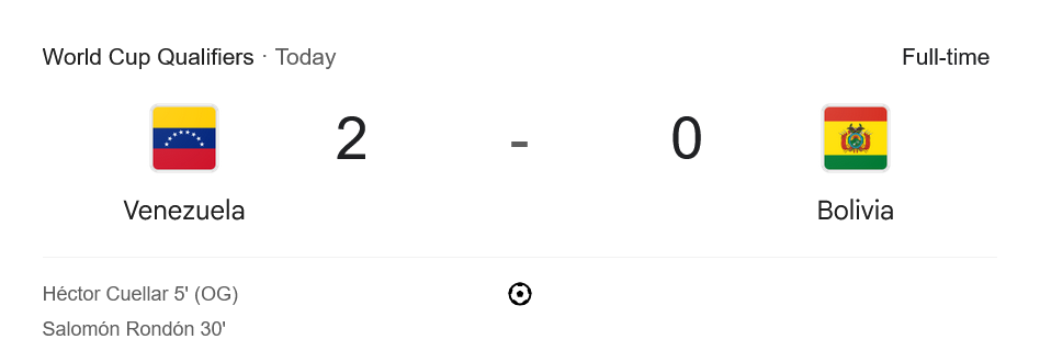 ศึกฟุตบอลโลก 2026 รอบคัดเลือก โซนอเมริกาใต้ เกมคืนวันที่ 6 มิถุนายนที่ผ่านมา เวเนซุเอลาเปิดบ้านโชว์ฟอร์มดุดันไล่อัดโบลิเวียไปแบบไม่ไว้หน้า 2-0 โดยเป็นการยิงประตูตั้งแต่ครึ่งแรกทั้งจากความผิดพลาดของแนวรับฝั่งเยือนและลูกยิงสุดเฉียบของซาโลมอน รอนดอน พร้อมขยับอันดับขึ้นมากดดันกลุ่มกลางตารางอย่างเต็มตัว ซึ่งใครที่ติดตาม ผลบอลสด คู่นี้ต้องบอกเลยว่าเกมมันส์ตั้งแต่นาทีแรก