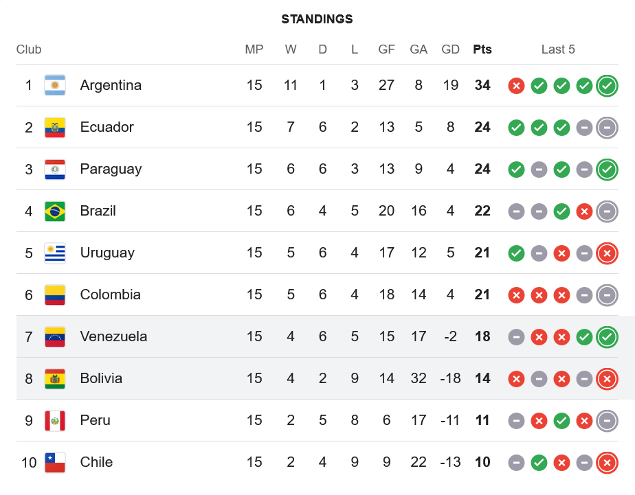 ชัยชนะนัดนี้ช่วยให้เวเนซุเอลาเก็บเพิ่มเป็น 18 แต้มจาก 15 นัด ขยับขึ้นมาอยู่อันดับ 7 ของตาราง และยังมีลุ้นแย่งพื้นที่เพลย์ออฟ ขณะที่โบลิเวียยังอยู่ในอันดับ 8 มีเพียง 14 แต้มจาก 15 นัด โอกาสลุ้นตั๋วบอลโลกยังเปิดกว้างแต่ทุกนัดต่อจากนี้ห้ามพลาดเด็ดขาด