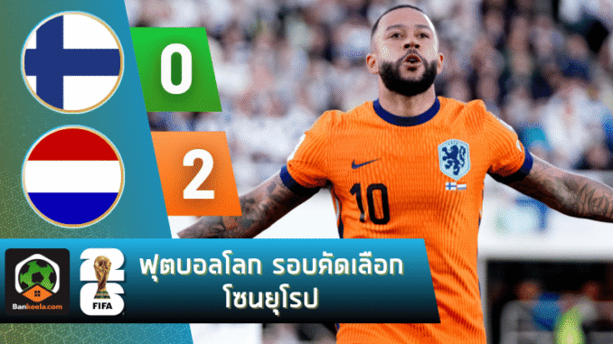 ศึกฟุตบอลโลก 2026 รอบคัดเลือก โซนยุโรป กลุ่ม G นัดที่ 3 คู่ระหว่าง ฟินแลนด์ เปิดบ้านรับการมาเยือนของ เนเธอร์แลนด์ จบลงด้วยชัยชนะของพลพรรคอัศวินสีส้มที่บุกมาคว้า 3 แต้มเต็มด้วยสกอร์ 2-0 จากสองประตูในช่วง 25 นาทีแรก โดยได้จาก เมมฟิส เดปาย และ เดนเซล ดัมฟรีส์ โดยเกมนี้ ผลบอลสด ชี้ชัดว่าเนเธอร์แลนด์เหนือกว่าทั้งเกมในแง่ของการครองบอล โอกาสยิง และการสร้างสรรค์เกมรุกอย่างมีระบบ ขณะที่เจ้าถิ่นฟินแลนด์พยายามต้านทานอย่างเต็มกำลังแต่ก็ยังต้านทานความร้อนแรงของทีมเยือนไม่ได้