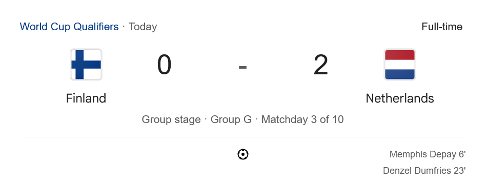 จากการอัปเดต ตารางบอล นัดถัดไปของเนเธอร์แลนด์คือเกมในบ้านพบกับมอลตาในวันที่ 11 มิถุนายนนี้ ขณะที่ฟินแลนด์จะต้องรับศึกหนักเมื่อจะเจอกับโปแลนด์ในวันเดียวกัน ซึ่งทั้งสองเกมนี้จะส่งผลโดยตรงต่ออันดับกลุ่ม G